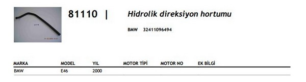 Urun Adi : HİDROLİK DİREKSİYON HORTUMU BMW E46 00-->