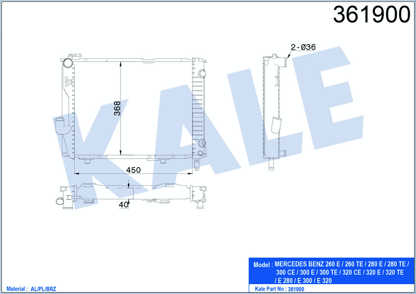 SU RADYATÖRÜ MERCEDES BENZ (E-CLASS) W124/S124/A124 E280-320/T 93<98 KOMBI-T S124 SEDAN W124 260E-320E/T 85<92 CABRIOLET A124 COUPE C124 300CE 87<93 (AT) [BRAZING] [450×368×40]